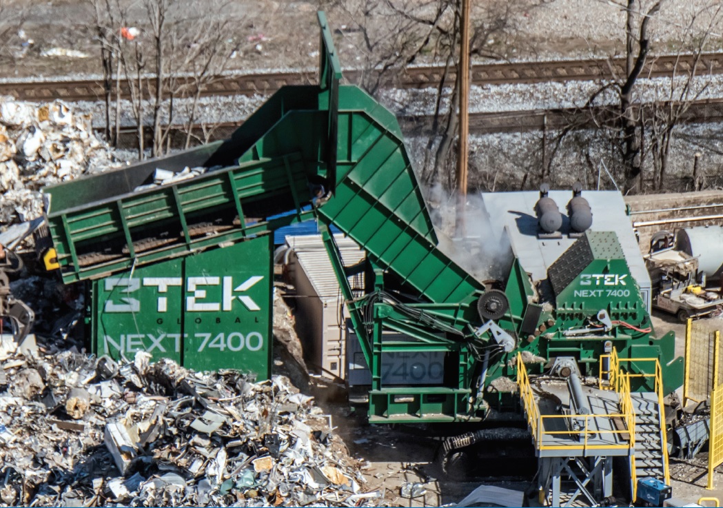 Пересувні молотильні подрібнювачі для чорного і кольорового металобрухту виробництва 3TEK з США разом з мобільною системою ECOHOG з Північної Ірландії для відділення чорних, кольорових та інших відходів.