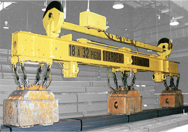 GAUSS MAGNETI projektuje i wytwarza specjalne elektromagnesy o głębokim polu magnetycznym do przemieszczania wiązek i pakietów żelaznych i stalowych o długości od 6 do 24 metrów.