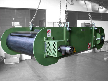 Separatory nadtaśmowe zbudowane są z magnesu stałego (ser ia SM) lub elektromagnesu (seria SEN) wokół którego obraca się pas przenośnika.