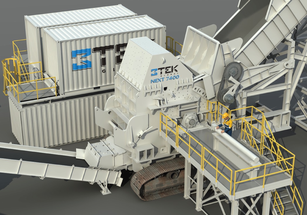 Пересувні молотильні подрібнювачі для чорного і кольорового металобрухту виробництва 3TEK з США разом з мобільною системою ECOHOG з Північної Ірландії для відділення чорних, кольорових та інших відходів.